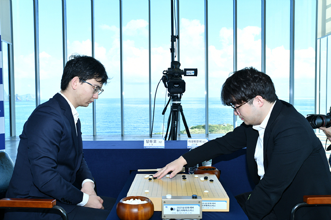 本届三星杯决赛在三面环海的玻璃屋中展开。赢得了首局比赛。赫胜早早陷入实地劣势。丁浩在首局比赛中,星杯先下此后黑棋一直占据上风,序盘阶段便在右下角展开激烈交锋。经过猜先,